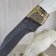 Представляем эксклюзивную настольную композицию “Касатка” – воплощение силы, мудрости и элегантности. Эта изысканная работа, выполненная из бивня моржа и бивня мамонта, станет неповторимым символом успеха и авторитета. Рукоять ножа украшена фианитами благородного фиолетового цвета, олицетворяющими мудрость, а клинок выкован из высококачественной дамасской стали с причудливым рискнком, что придает композиции особую выразительность.